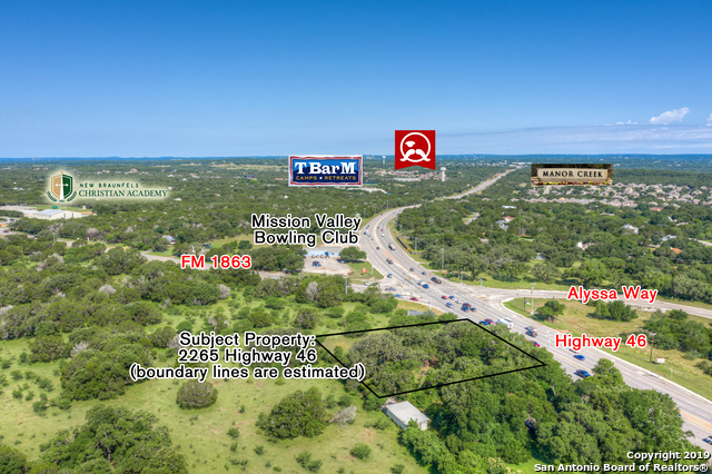 Excellent Commercial potential at this .991 Acre lot adjacent to the corner of the intersection of State Hwy 46 and FM 1863. Located within the City limits of New Braunfels and zoned R2 however highest and best use for this lot is Commercial (majority of properties surrounding this lot are already zoned Commercially). Electric and water well on site; septic on site but likely inoperable.